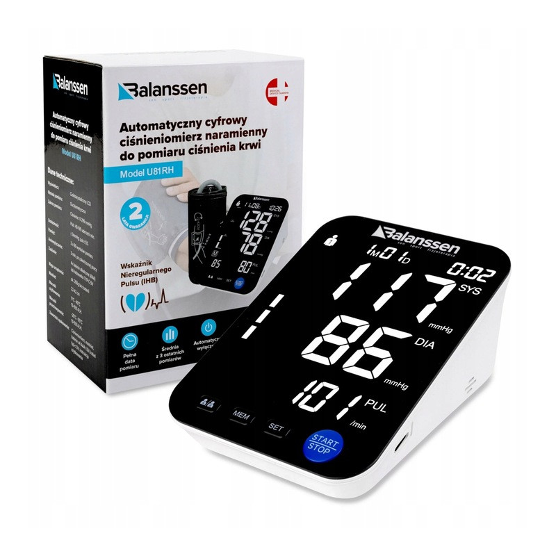Automatyczny ciśnieniomierz naramienny U81RH to niezawodne urządzenie medyczne, które umożliwia precyzyjne monitorowanie ciśnienia krwi i rytmu serca w warunkach domowych. Dzięki dużemu, czytelnemu wyświetlaczowi oraz prostemu w obsłudze interfejsowi, użytkownicy mogą szybko i wygodnie przeprowadzać pomiary. Urządzenie wyposażone jest w wskaźnik nieregularnego pulsu (IHB), co pozwala na wczesne wykrycie potencjalnych problemów zdrowotnych.
